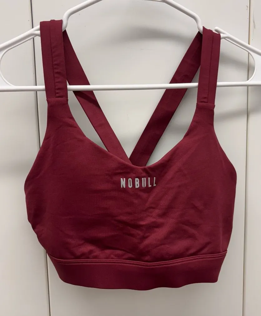 NOBULL High-Neck Sports Bra in a gorgeous matte burgundy. Designed for CrossFit, lifting, or high-intensity training, this bra offers great support and a stylish cross-back strap design. Size: Medium Color: Wine/Burgundy with black lining Condition: Gently used, no flaws. Features: Sweat-wicking, breathable, and supportive high-neck fit. #nobull #crossfit #fitness #gymwear #sportsbra #athleisure