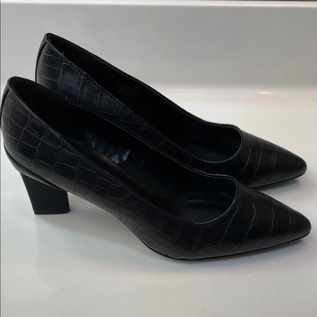 LOGO Lori Goldstein Women’s Liza Leather Reptile Embossed Black Pointed Heels Size 8 - $35 - From Hannah