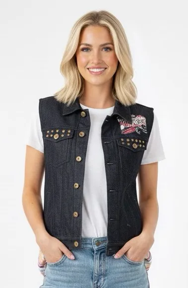 Agile denim sleeveless dark wash Denim Vest Studded Details & America detail Size M - $27 - From Melinda