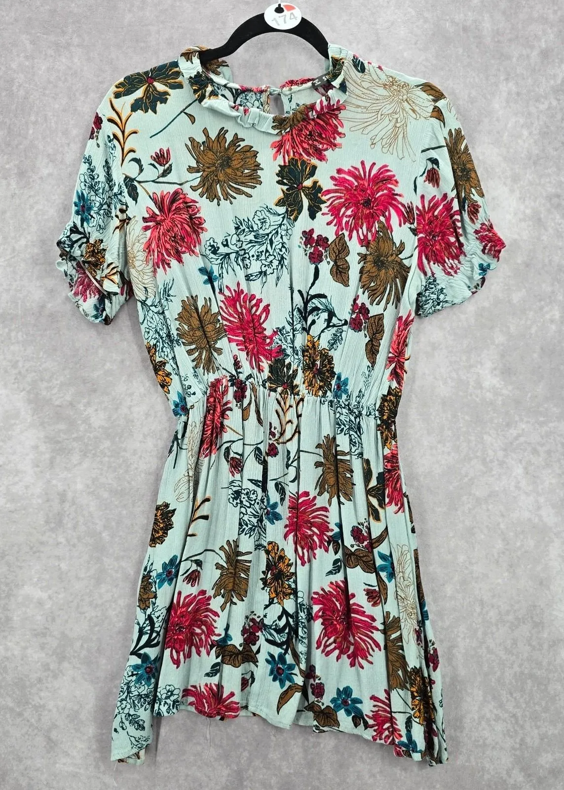 Blue Floral‎ Ruffle Short Sleeve Flare Boho Knee Length Dress Small - $34 - From LimenDime