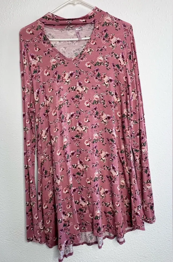 Floral Pink V-Neck Top long sleeve size Xl long sleeve - $42 - From Yosanny