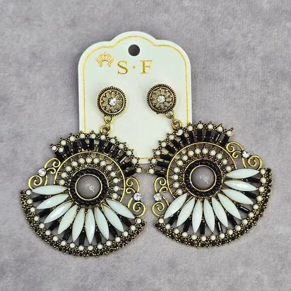 Gold Gray White Boho Floral Dangle Stud Gems Fashion Jewelry Earrings NWT JB2-35 - $28 New With Tags - From LimenDime