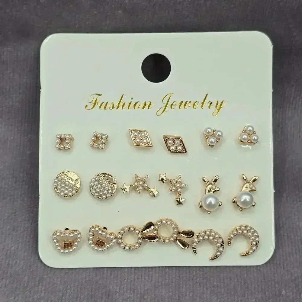 Gold Pearl Stud‎ Hook Dangle Moon Heart Bunny Fashion Jewelry Earrings JB2-49 - $19 New With Tags - From LimenDime