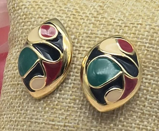 Step back into the 80s with these mint-condition gold-tone and enamel swirl earrings. Featuring blue, cream, and red hues, they add a retro flair to any outfit. Perfect for pierced ears, these earrings are a timeless accessory for any jewelry collection. • Gold-tone and enamel • Swirl design • Blue, cream, red colors • 80s retro style • Mint condition • For pierced ears Size: Womens 1" Condition: Pre-Owned Like New Excellent Condition
