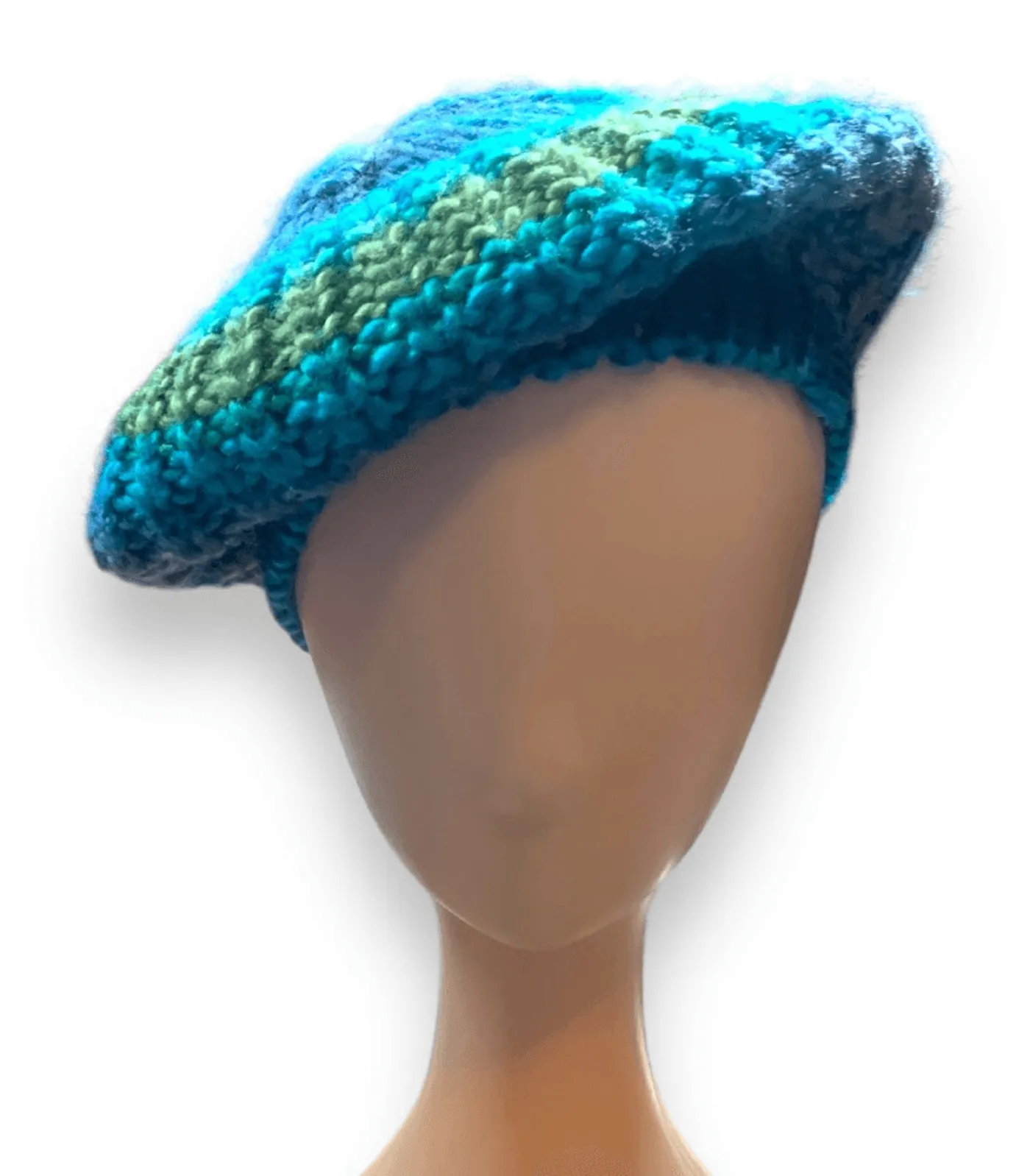 Knit Hat Stylish beret Soothing tonal shades of green and blue Made of 100% acrylic 9 x 10 inches 2... Show more