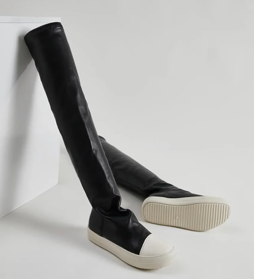 Black & cream Outer material Polyurethane (PU) Closure type Pull-On About this item SOLE: Rubber outsole increased traction and friction, non slip and wear resistant,make smooth and confident in your every step DESIGN: Sets to wear, eliminating the trouble of tying shoelaces, easy to put on and take off, round toe,flat heel and knee design, trendy and stylish MATERIAL: Made of pu material and soft lining,smooth and textured upper, comfortable wear,suitable for long periods of wear or walking MATCH: Classic and simple women's thigh high boots,can easily pair with jeans,shorts,dresses,create your fashionable look OCCASION: Women's knee high boots are suitable for shopping,dating,working,wedding or other daily wear