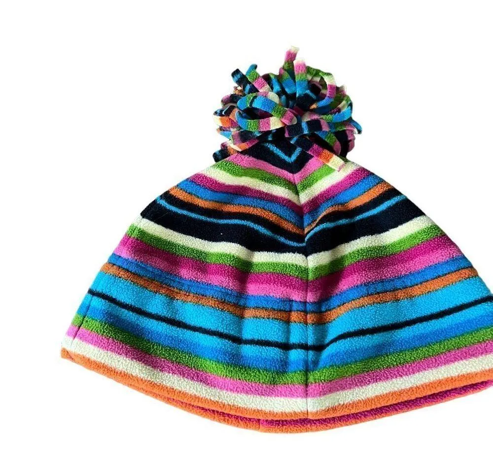 Rainbow striped fleece hat with pom pom Pink - $10 - From Amy