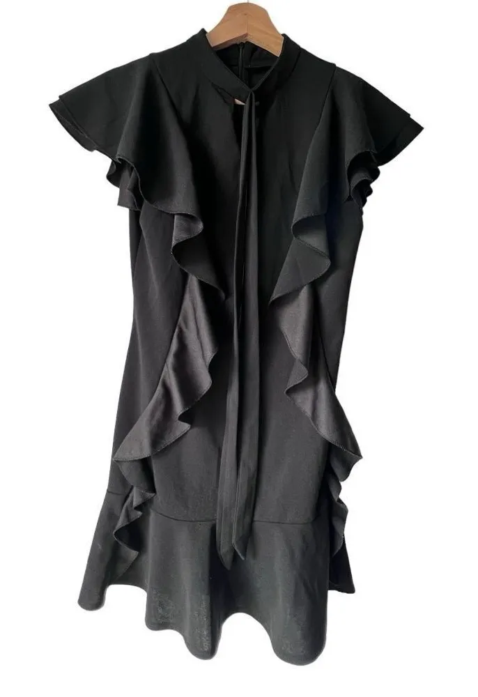 Women's black casual Elegant Dresses for Tie Neck Puff Short Sleeve Office S. - $39 - From Yosanny