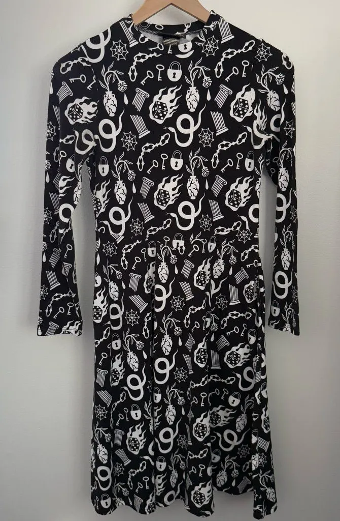 Nooworks Small Ursula Mini Dress Odin Fit & Flare Black White Gothic Grunge - $76 - From Most