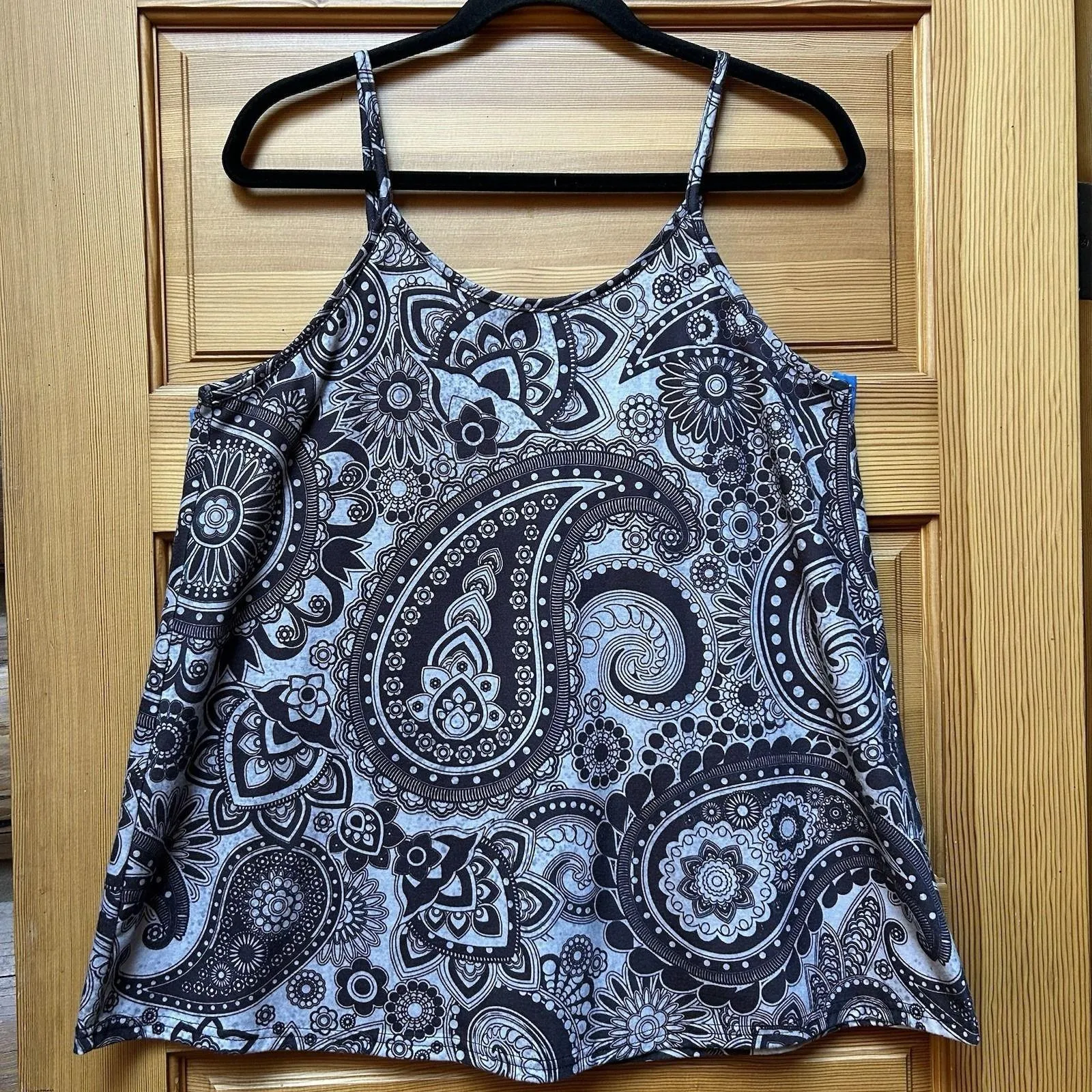 Noracora Women's Brown Floral Paisley Tank Top Shirt | Size Medium | Yoga Gym Workout Outdoor Hiking Camping Hippie Boho Gorpcore Indie Festival *Stretchy and comfy. Fun brown floral paisley pattern over a bluish gray background. Round neckline. Spaghetti straps. Relax fit. Hemline hits approx at the hips. *Women's size medium *Excellent preowned condition *No rips, tears, snags, stains or funky smells. *100% polyester *Cleaning instructions: See photo *Smoke free home *Approx measurements: *Chest: 38" in *Length 28" in *All measurements are taken with garment flat and doubled when necessary. *Please refer to photos as they show the exact item you will receive. *Colors may vary due to devices and/or lighting. *Happy to answer questions or provide more photos if requested. *All reasonable offers encouraged!