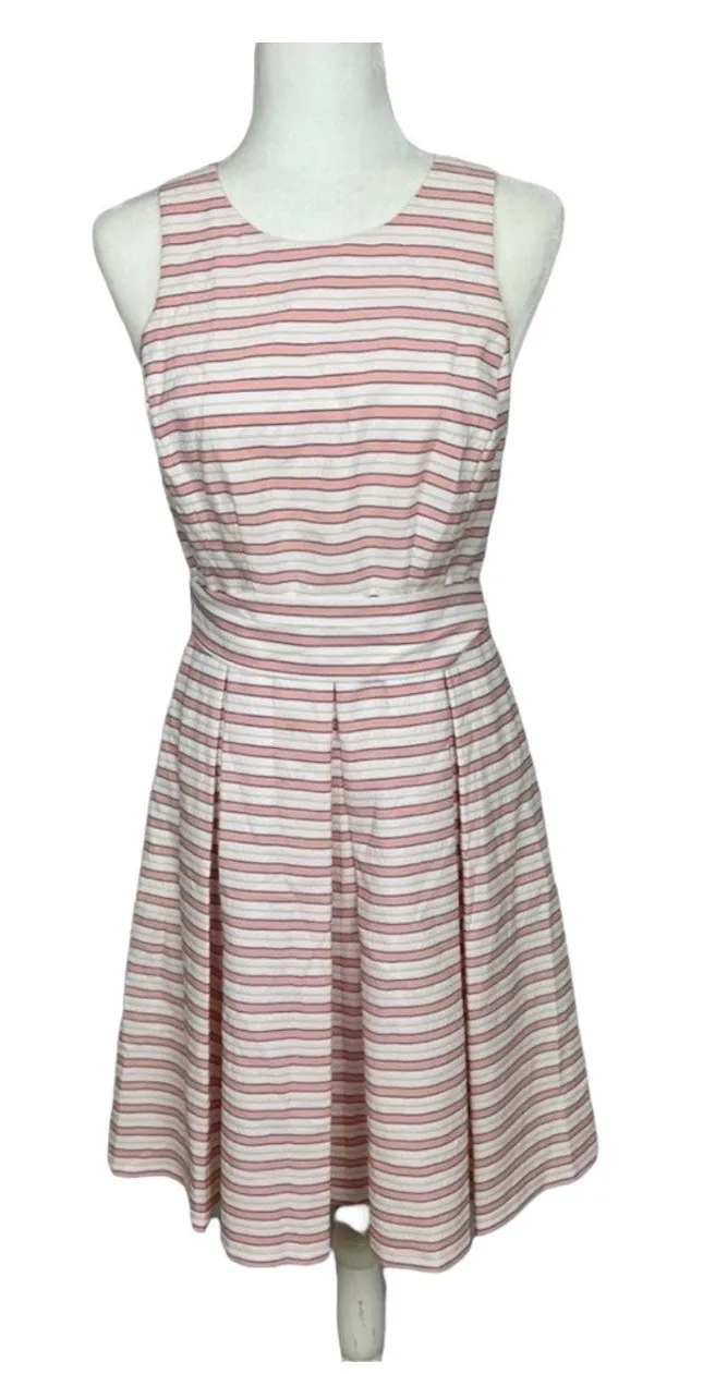 1901 White Pink Pleated Back Cut Out Full Skirt Fit & Flare Wide Tie Midi Dress Wide removable tie... Show more