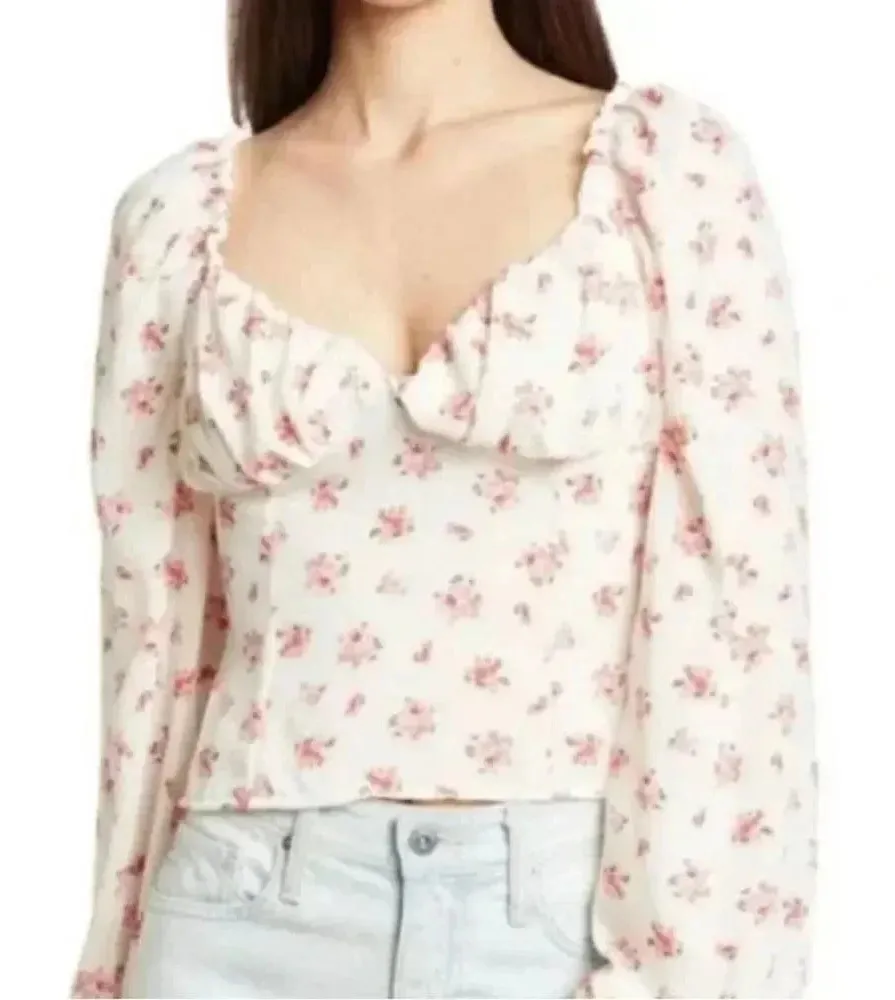 Nordstrom Abound Woven WHITE DITSY FLORAL Women's White Pink Long Sleeve Top Elastic Cuffs SZ XS N... Show more