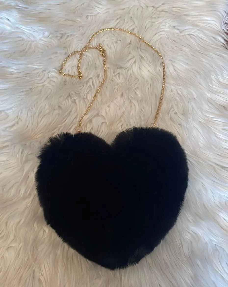 Nordstrom Black Heart Purse Fluffy soft Gold chain Cross body Excellent condition