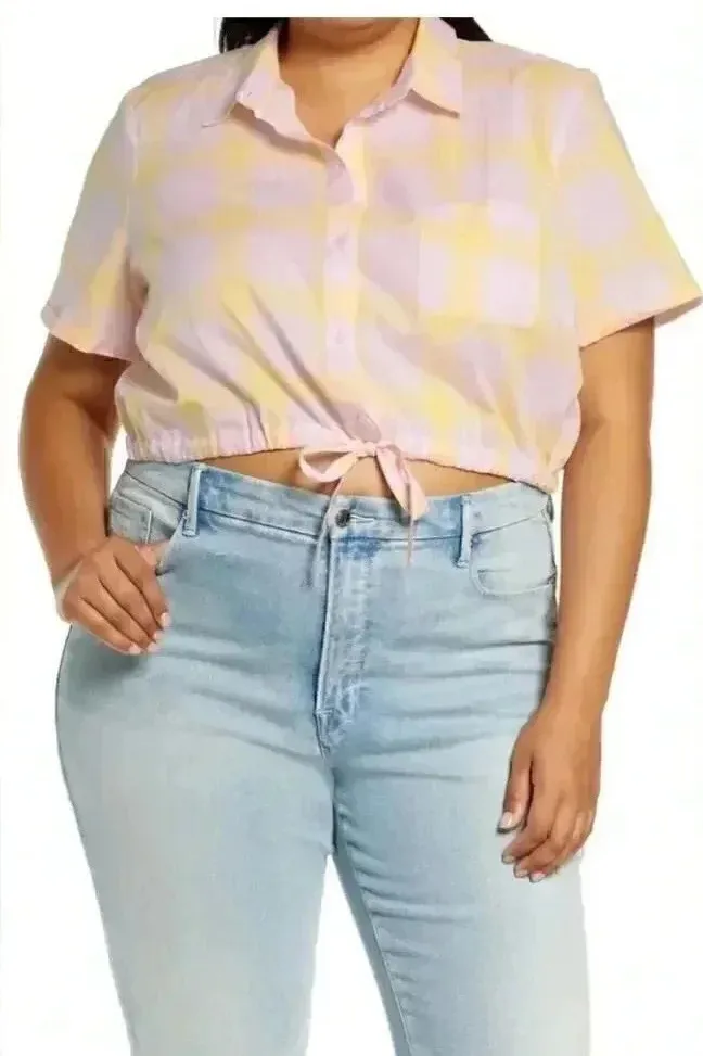 Nordstrom BP Windowpane Crop Pink Yellow Button-Up Shirt SZ 1X New with tag. Measurements may be fo... Show more