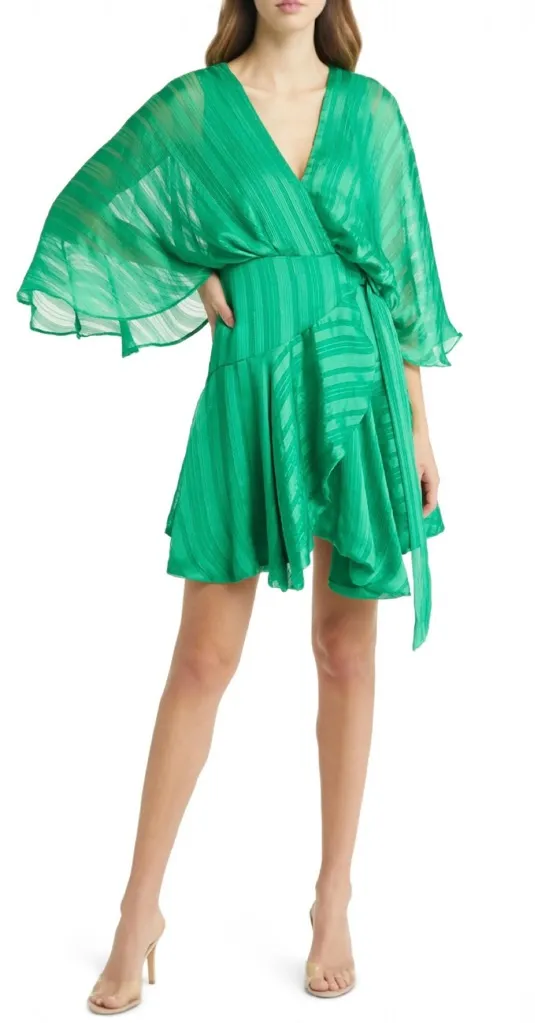 Nordstrom BTFL-Life Vonda Green Satin Wrap Mini Dress | Flowy Kimono Sleeves Boho Features a wrap... Show more