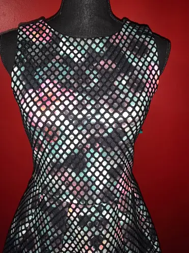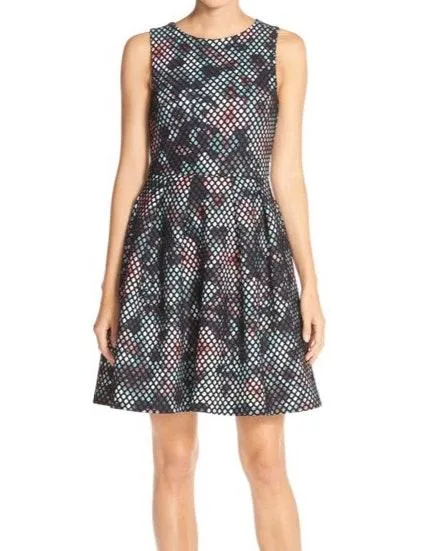 A layer of mesh bonded to marbled scuba-knit fabric textures this pocketed, box-pleated dress. Back... Show more