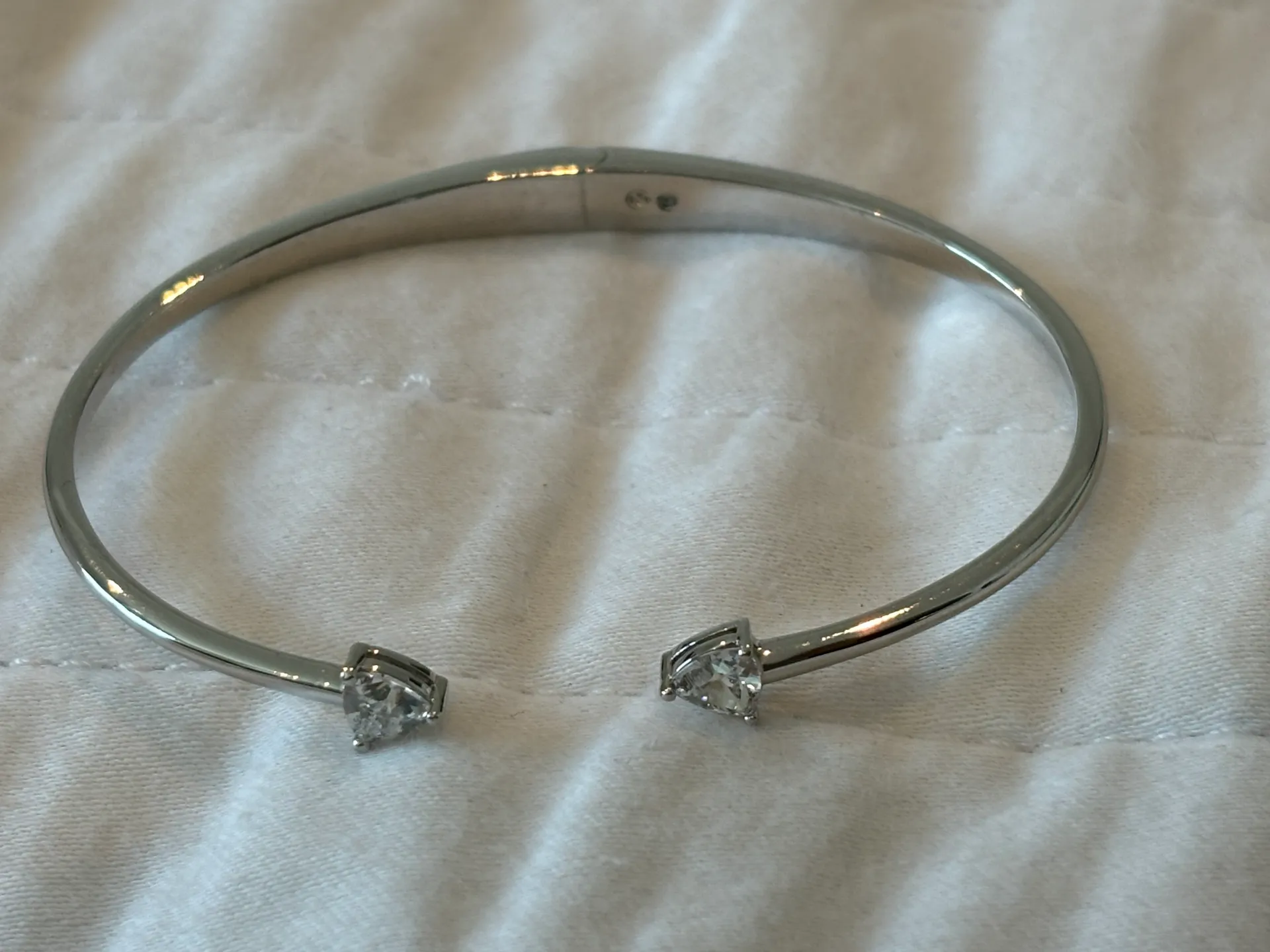 Nordstrom Real Silver Bracket With Swarovski Crystal. Band opens with a hinge so fits most wrists. I... Show more