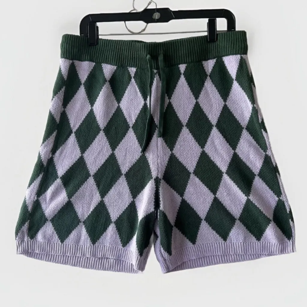 Bp. Be Proud Gender Pride Argyle Knit Sweater Shorts Diamond Green Purple A0030 size: XSMALL Appro... Show more