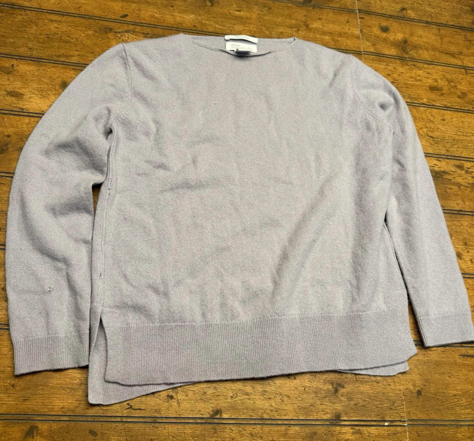 Nordstrom women XS crewneck cashmere sweater Light Purple 100% cashmere FLAWS Multiple tiny holes s... Show more