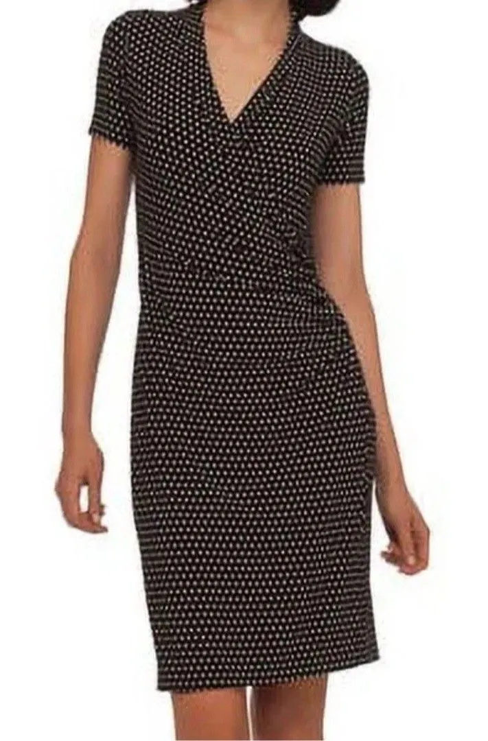Excellent pre-owned condition (see pictures for details) Features - Style Profile : Norma Kamali Faux Wrap Dress Fitted Jersey Stretch V Neck Short Sleeve - Flaws - no holes, stains or tears - Please see photos for measurements (in inches) - Happy to answer any questions - Washing Instructions: machine wash Size : S Small Color : black and white baby dot Tags : bodycon wrap dress sheath stretch jersey comfort office business secretary siren Smoke free | pet friendly home- not stored where pets have access Fast shipping! Usually next business day!
