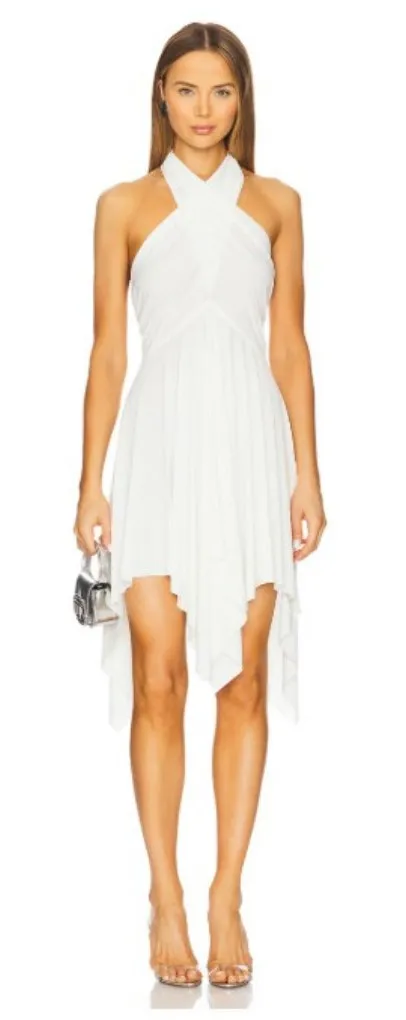 Brand: Norma Kamali Style: Convertible Dress Color: Cream Womens size on tag: XL/42 Style/Model code: KK1253PL213840 UPC: 889047819673 Details: Multi-way convertible styling, draped silhouette, flowing handkerchief hem, elegant event-ready look, original hang tag attached.