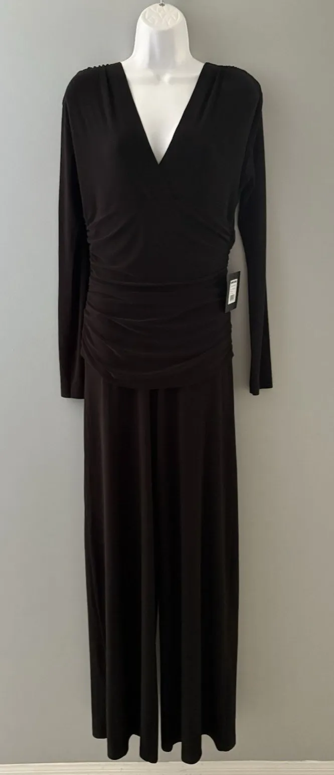 Measurements (inches) - laying flat Tag Size: M Length (top of collar to hem): 59" Chest (pit to pit): 15 1/2" Waist: 15 1/2" Rise 8" Inseam: 32" Leg Opening: 12" Additional Information: Lots of stretch, ruching in the back as well, the Norma tag is loose Style Aesthetics/Look: Quiet Luxury, Holiday, Party, Black Tie, Ethereal, Professional, Minimalist, Gala, Cruise Please check your measurements with the ones in the listing. Do NOT rely on Tag Size.