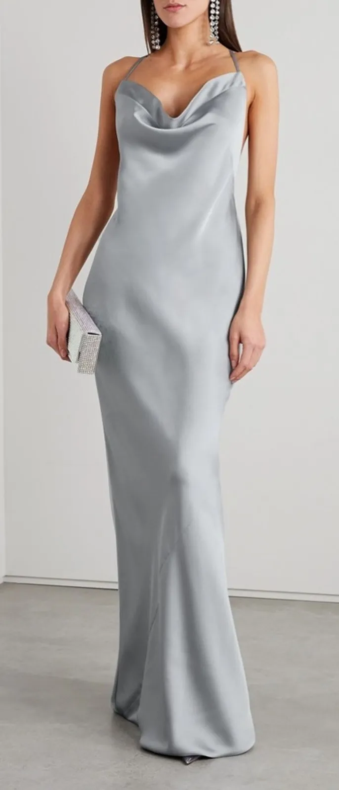 Norma Kamali Womens Silver Cowl Neck Sleeveless Low Back Cross Back Bias Gown L Size L - $102 - From Lena