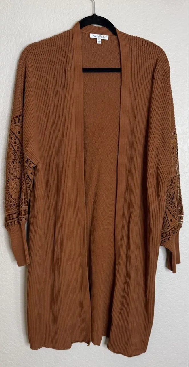 Northstyle Womens XL Brown Rust Boucle Bolero Open Front‎ Cardigan Lace Sleeves - $35 - From Andrea