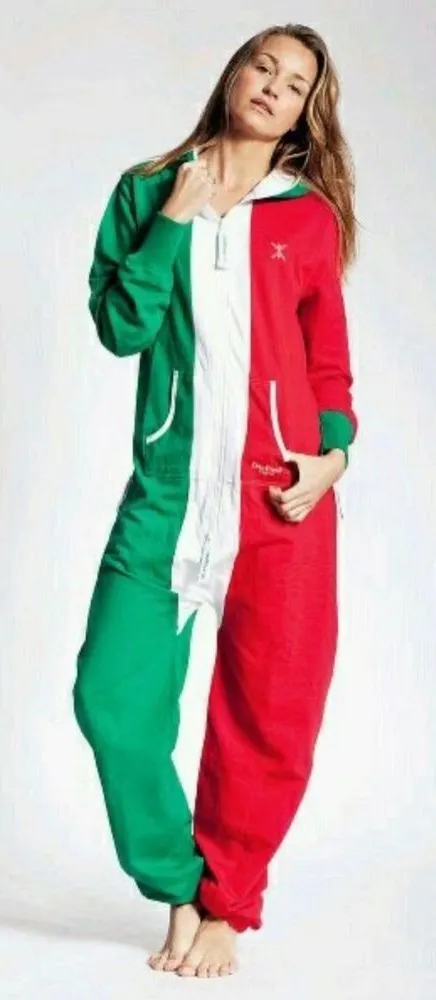 Cozy and fun zip-up hoodie onesie by The Norwegian One Piece. Colorblocked in festive red/green/white, full zip front, hooded with pockets. Great for lounging, holiday fun, costume parties, or as a quirky statement piece. Very good pre-loved condition with minimal wear. • Brand: The Norwegian One Piece • Size: Small • Color: Red, Green, White • Style: Hooded, full zip, jumpsuit / onesie • Condition: Very Good / Pre-owned hoodie jumpsuit, zip up onesie, loungewear, holiday onesie, cozy outfit, lounge jumpsuit, holiday pajama, Christmas romper, fun outfit, lounge gear, giftable onesie, streetwear twist