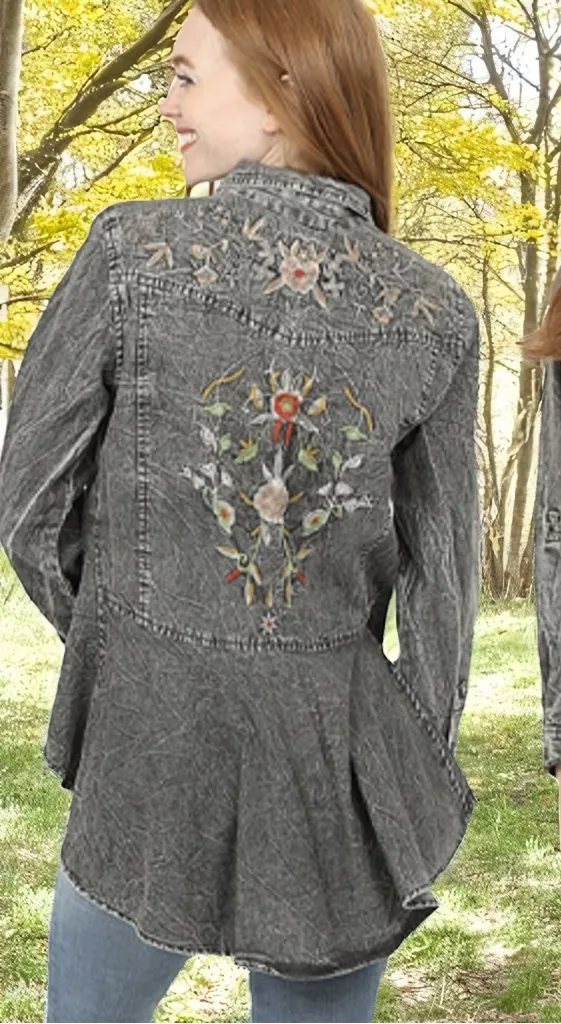 Nostalgia Black Denim Tunic with Colorful Floral Embroidery Peasant Bohemian S Gray - $28 - From Casey