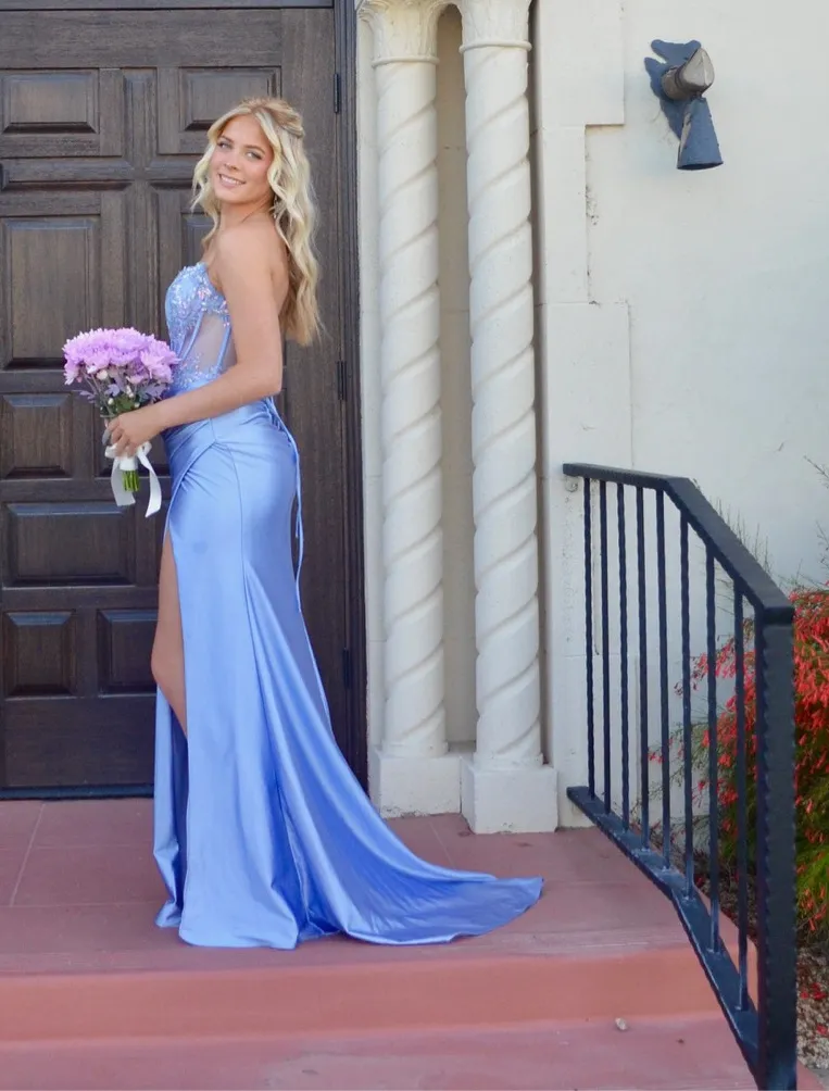 Nox Anabel F1570 beaded-corset long prom dress in light blue satin Purple - $160 (57% Off Retail) - From Ally