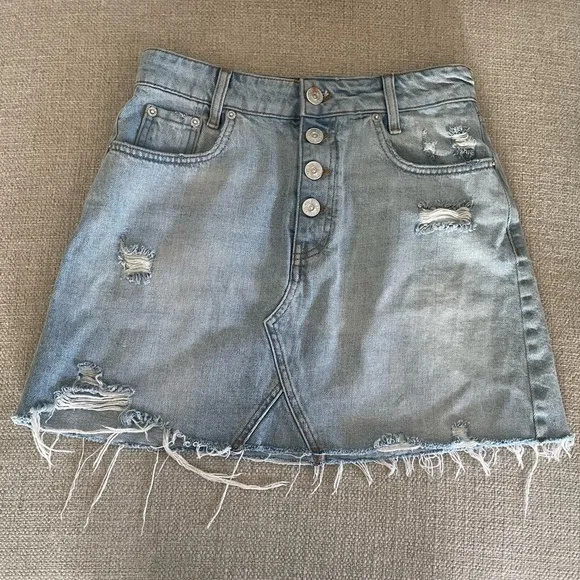 Urban Outfitters BDG Denim Skirt Size Medium Light Wash Distressed Buttons No Flaws A75