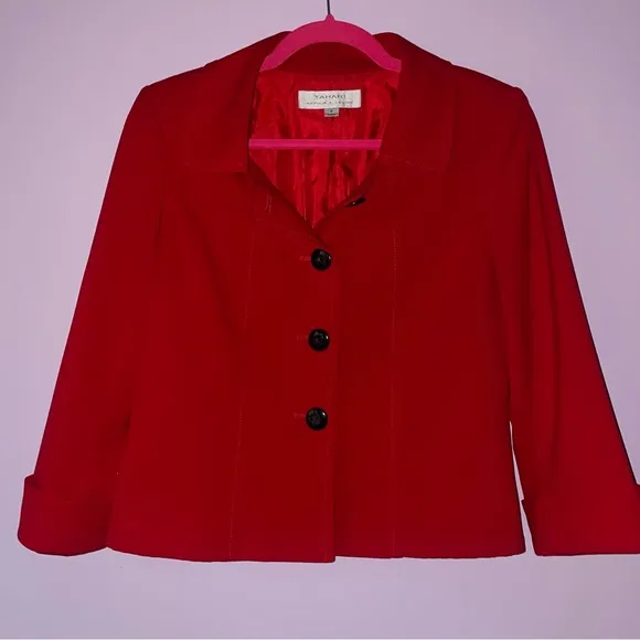 Tahari Size 6 Blazer Red Button Collar Jacket Features - full button front closure - cuffed long sl... Show more