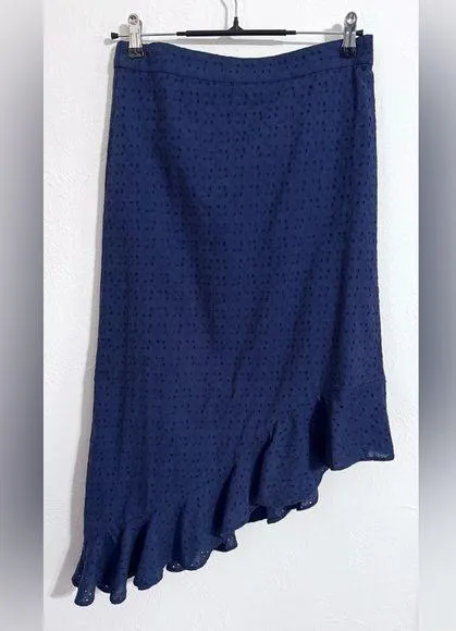 Excellent condition J. Crew Mercantile floral motif embroidery and eyelet asymmetrical midi skirt wi... Show more