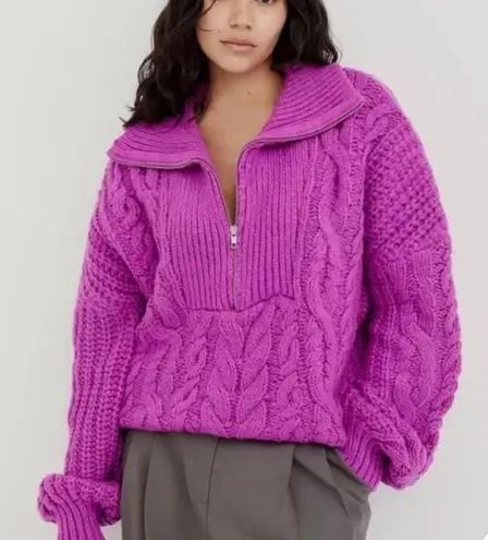 Size small New with Tags Purplish pink Chunky cable knit sweater Longer bubble sleeves sporty zip f... Show more