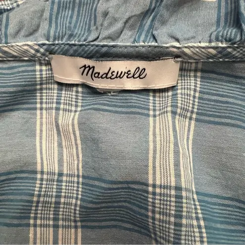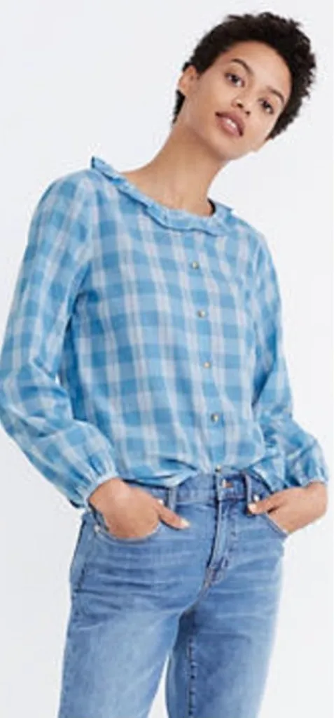 Madewell Ruffle-Neck Colwell Plaid Top in Ashby Plaid Ocean Wave Size XXL A contender for cutest sh... Show more