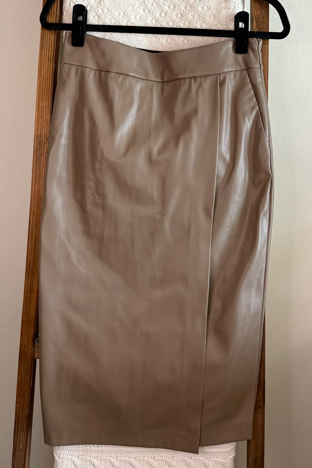 NUDE Chocolate Brown Faux Leather Faux Wrap Midi Skirt Size 8 - $17 (94% Off Retail) - From Julia