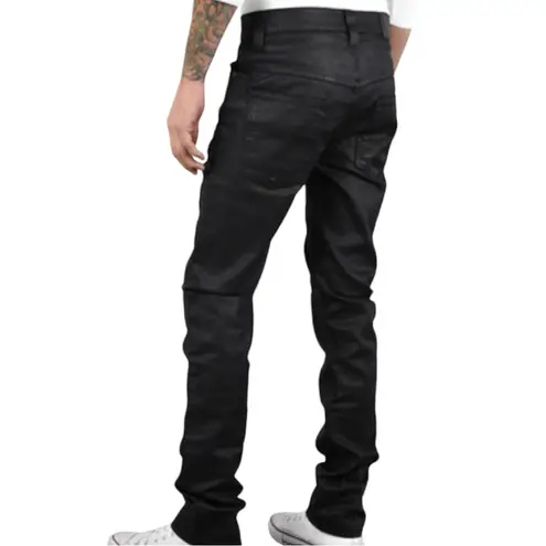 Like new condition. Never worn. coated style is made with dry denim, topped with a layer of black resin. unique-look jeans are crafted in Italy using 12oz comfort stretch denim, made from 100 percent organic cotton. Over time the resin coating is designed to fade, producing a raw appearance with sharp contrasts and a matte finish. The all-black design is complemented by a gunmetal trim on the zip, rivets and button. • Organic cotton • 11.75 oz comfort stretch denim • Black thread on all seams • Antique silver trims • Zip fly • Jacron or leather patch • Sim fit • Mid waist • Slim leg • Slim leg opening 99% Cotton 1% Elastane Made in Italy Description Dry black jeans in stretch denim with serious break-in potential. Unlike the rest of our dry black stretch jeans, the yarns have been yarn-dyed prior to the weaving to keep the yarn-core white. An aspect that allows for some serious break in potential. We recommend 6 months of hard, every day, Wear before the first wash, if not longer. This way you will end up with a beautiful pair of worn-in jeans. It sure is a long time, however, it's only a recommendation. As long as you give them love, the result will be great. Size 32/34