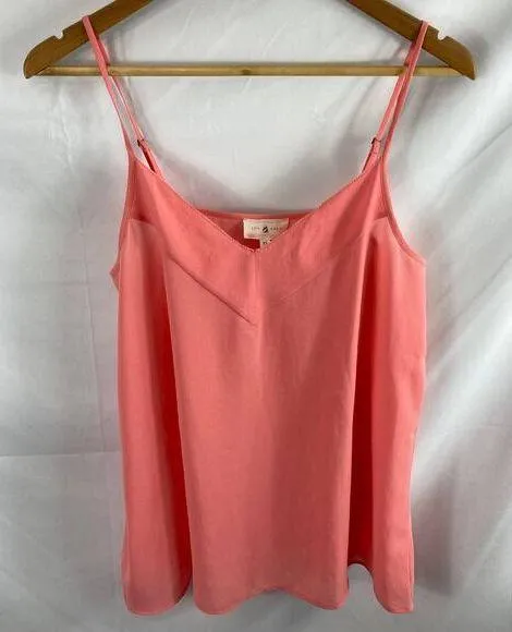 Lou & Grey soft pink v neck cami tank adjustable spaghetti strap raw hem style v neck top chiffon fl... Show more