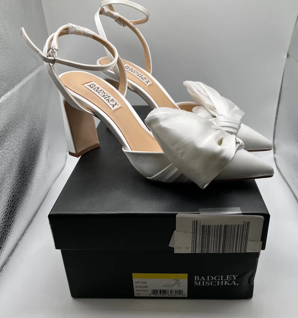 NWB Badgley Mischka Women's Alease white silk size 5.5 heels party wedding - $199 New With Tags - From Eva