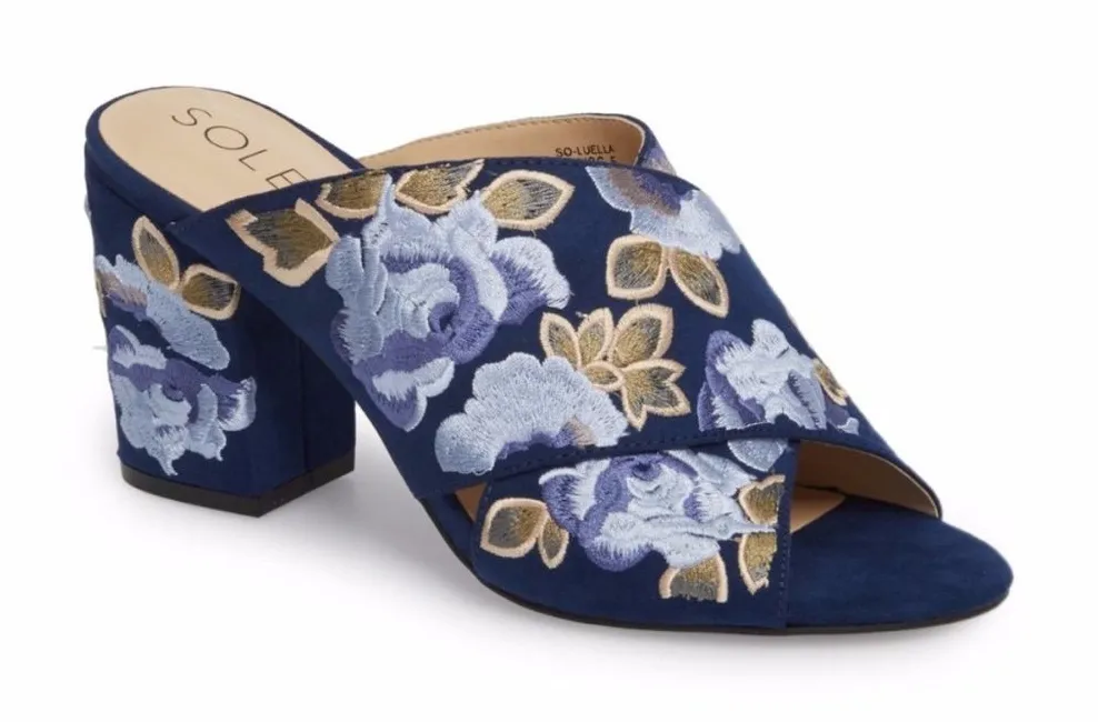 NWOB Sole Society Luella Blue Floral Women's Embroidered Heels Mules Shoes Size 9 - $65 - From Rebecca