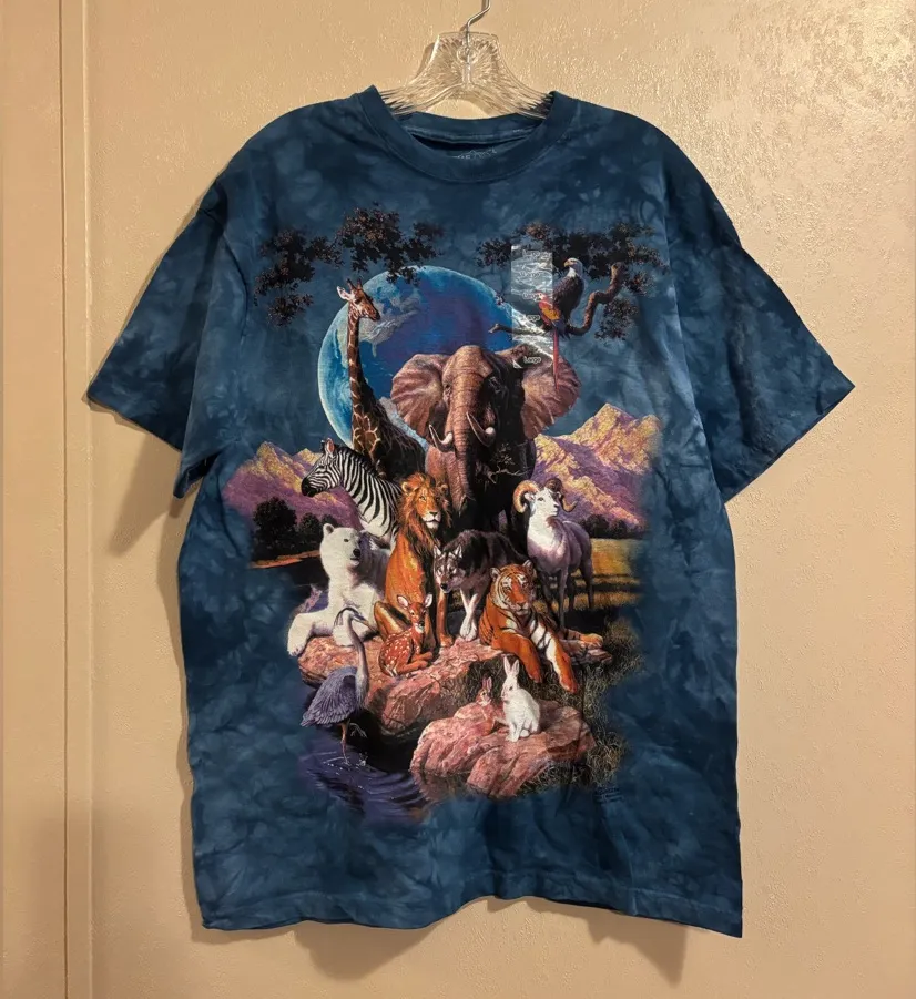 NWOT 1999 The Mountain Vintage Animal Tie-Dye Tee sz L Y2K Blue Size L - $25 - From Sandy