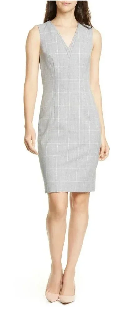 Ted Baker Avriild Plaid Check V-Neck Sheath Dress Size: Ted Baker Size 5 / US 14 Color: Charcoal... Show more