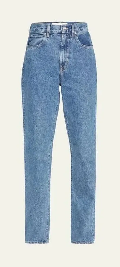 SLVRLAKE London Crop Size: 31 Color: Medium wash Retail: $339 With their high-rise, straight-leg shape, SLVRLAKE's signature 'London' jeans have a cool '90s feel. They're made from dark-blue organic denim and have ankle-grazing hems, which work well with sneakers. Fabric: Mid-weight, low-stretch denim Fading and whiskering Straight-cut, ankle length style Button closure and zip fly 5-pocket styling Shell: 98% cotton/2% elastane Wash cold Made in USA Pet-free, smoke-free home. NEW WITHOUT TAGS - NEVER WORN No flaws Ships quickly!
