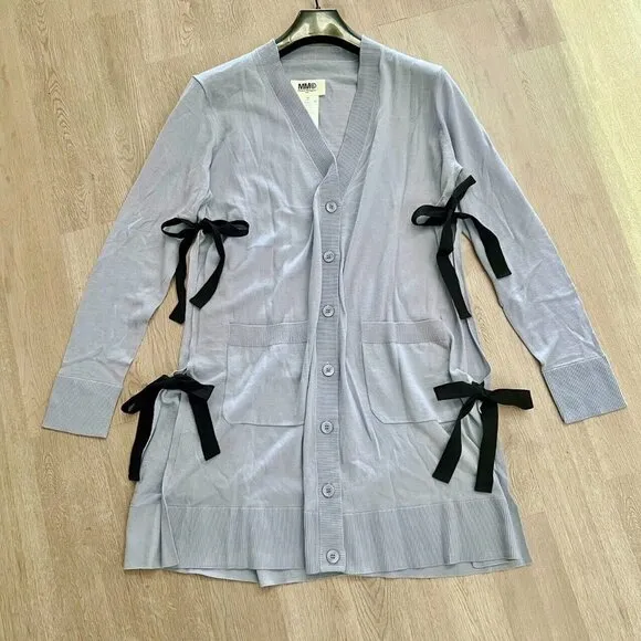 NWOT $650 Maison Margiela Women's Side Bow Wool Blend Cardigan Sweater Sz L MM6 Blue Size L - $385 - From Angela