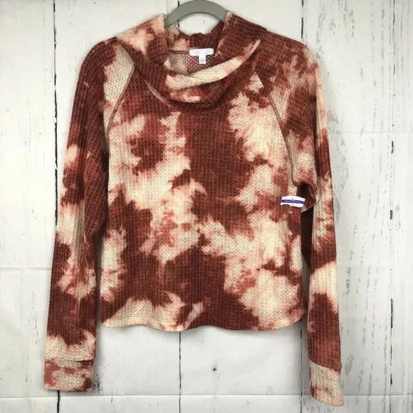 NWOT Abound Size S Tie Dye Waffle Knit Crop Top Cowl Neck Long Sleeve Orange - $12 - From Jenna
