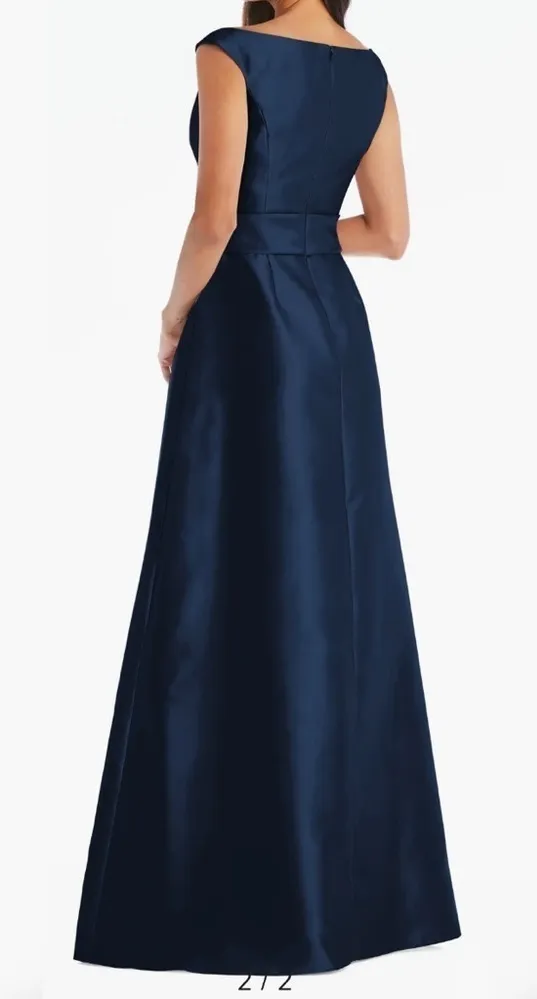 New without tags, never worn Size 10 r Color NAVY Alfred Sung D827 One-Shoulder Satin Twill Trump... Show more