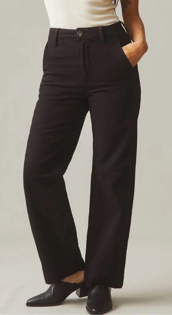 Tackle your to-do list in the Wide Leg Pant. Made of USA-grown heavyweight cotton, it’s equal parts functional and fashionable with plenty of pocket storage and just enough stretch to keep you comfortable while getting the job done. Straight fit through the hips Wide leg opening High-rise waist New without tags. Keywords: American Giant, women's pants, wide-leg, black, casual. Brand: American Giant Size: 8 Style: Wide-Leg Pants Color: Black Department: Women Material: 98% Cotton, 2% Spandex Pattern: Solid Occasion: Casual Garment care: Machine Washable