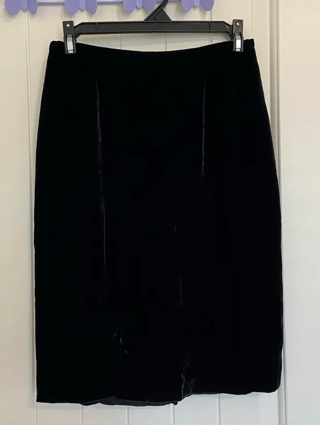Women’s Ann Taylor skirt. Skirt is velvet material & black in color. Fully lined, zips from the back... Show more