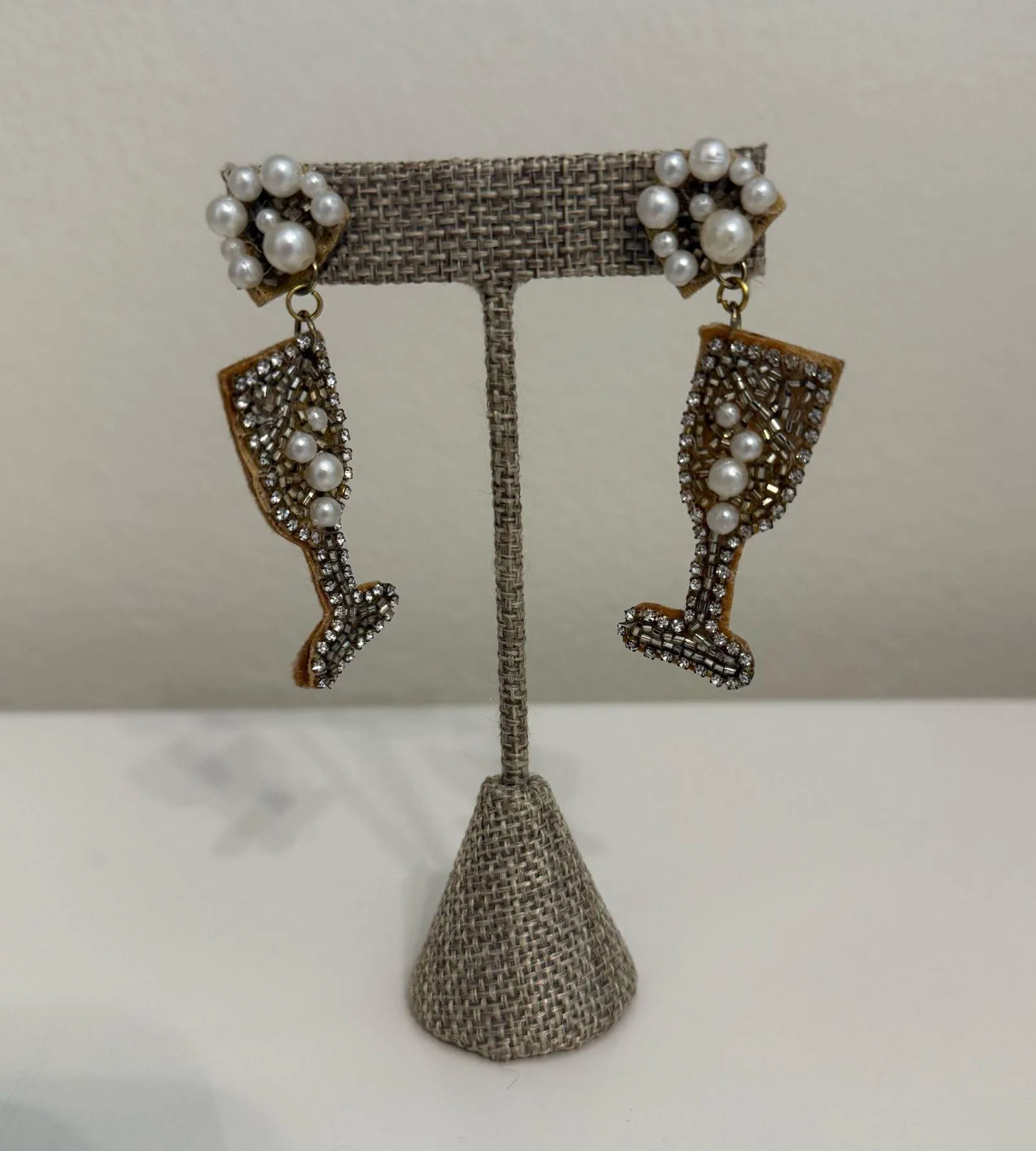 NWOT Anthropologie Crystal Beaded & Pearl Champagne Glass Statement Earrings. Brand new without tags... Show more